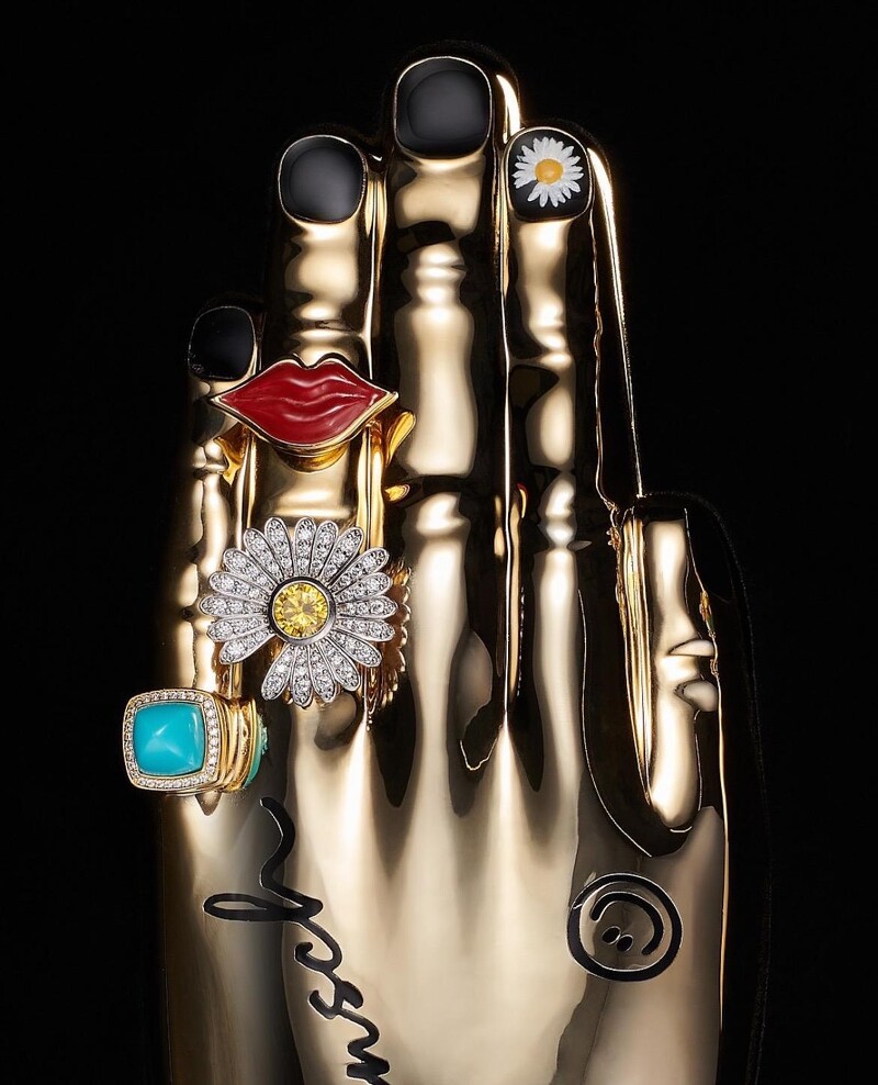 此外Gentle Monster更为此打造了以为概念的眼镜盒,立体细緻的金色手模型盒,戴着GD品牌Peaceminusone标誌性的小雏菊,黑色美甲上也能看见这个小细节,小指上还有GD私下常佩戴的绿松石戒指,满满的元素,让人一看就知道这是属于他的!
