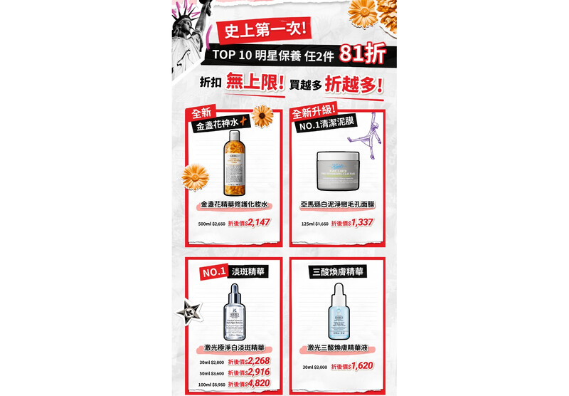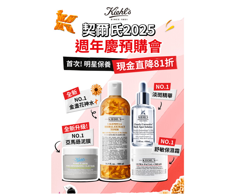 Ok讲到囤货,囤货不等于大撒钱!聪明如我们(与正在阅读的姐妹们),快趁现在!保养界的年度盛事要来了--【週年庆】!小编已準备好了,这次最让人心动的,绝对是Kiehl’s契尔氏【金盏花精华修护化妆水】全面升级登场,500ML将会直接在预购会首发,guess what! 一次入手两瓶还会直接下杀81折!买新金水想搭其他的?也可以搭配契尔氏Top 10明星产品,任选2件明星商品直接81折!姐妹们这个价格千万不能等,小编就说到这!